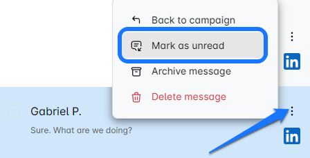 This is the default view of the inbox, where you can see messages from all the campaigns you’ve run on the Social Vertex. You’ll also get a glance at messages from all three inboxes that the Smart Inbox merges: LinkedIn, Sales Navigator, and Email 📧.